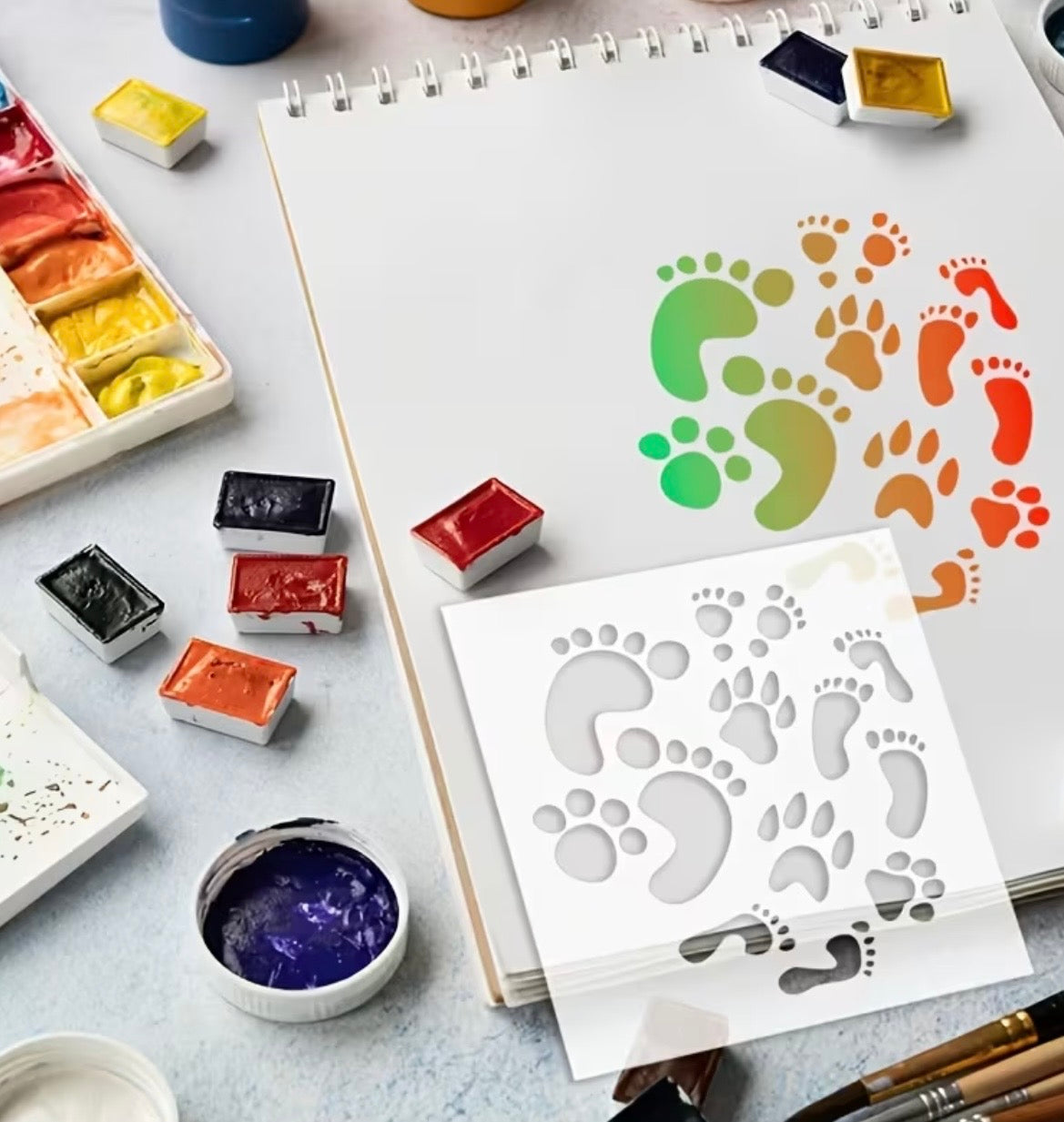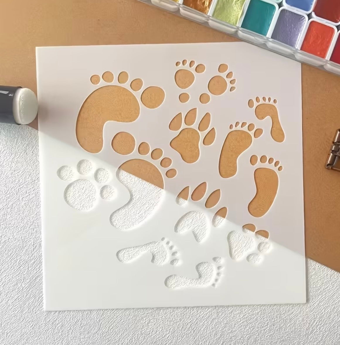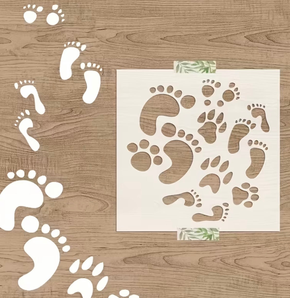 Baby Footprints & Paw Prints Plastic Stencil