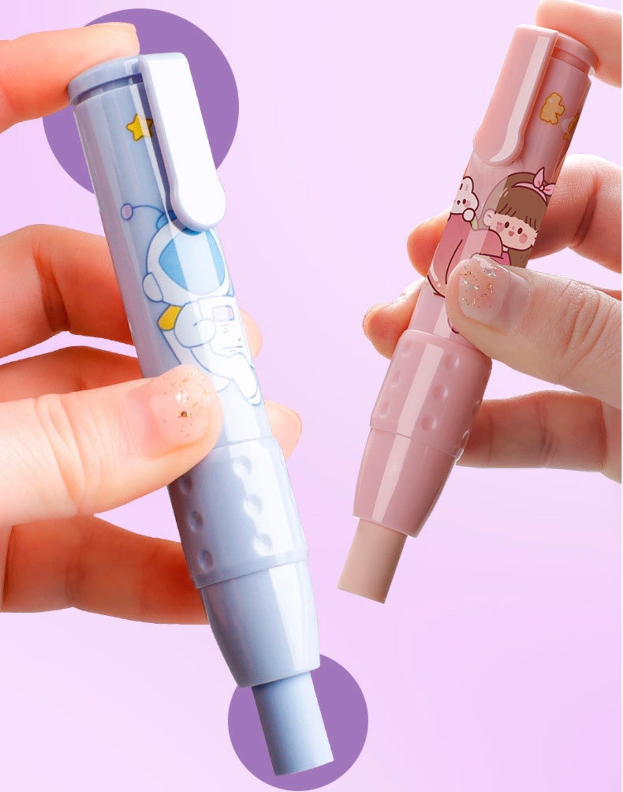 To refill : press and hold the top part , put eraser in from the bottom
