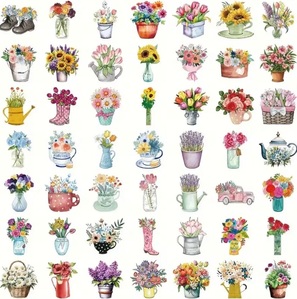 50 Pcs Floral Stickers