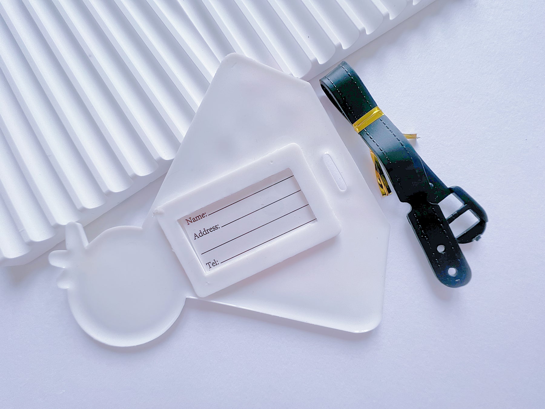 Address card with the plastic cover on the back